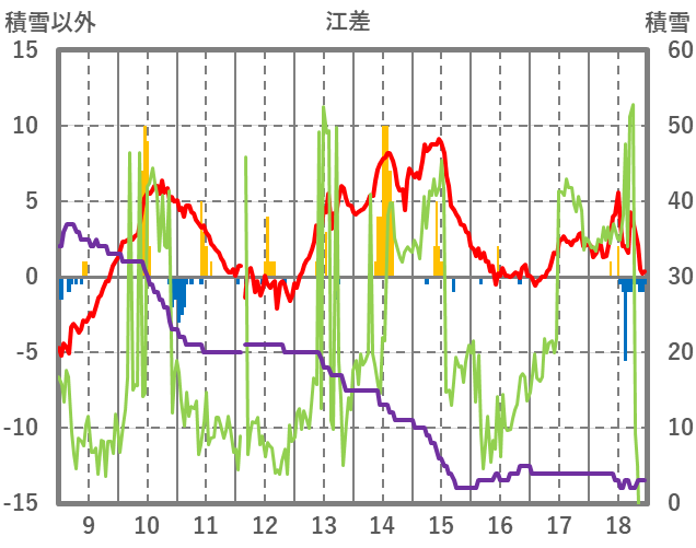 | 日 | 時 | 気温 | 降水 | 風向/風速 | 日照 | 積雪 | 降雪 |