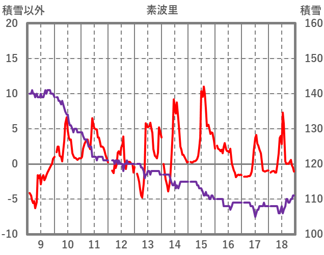 | 日 | 時 | 気温 | 降水 | 風向/風速 | 日照 | 積雪 | 降雪 |