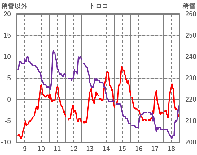 | 日 | 時 | 気温 | 降水 | 風向/風速 | 日照 | 積雪 | 降雪 |