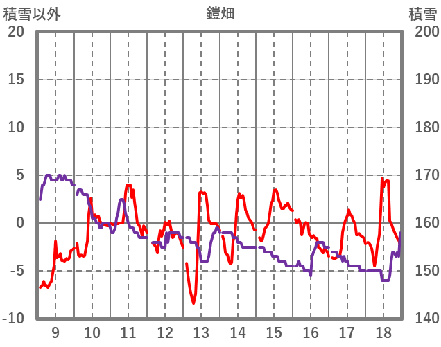 | 日 | 時 | 気温 | 降水 | 風向/風速 | 日照 | 積雪 | 降雪 |