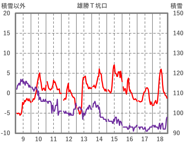 | 日 | 時 | 気温 | 降水 | 風向/風速 | 日照 | 積雪 | 降雪 |