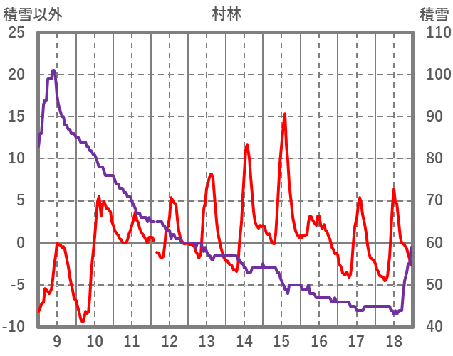 | 日 | 時 | 気温 | 降水 | 風向/風速 | 日照 | 積雪 | 降雪 |