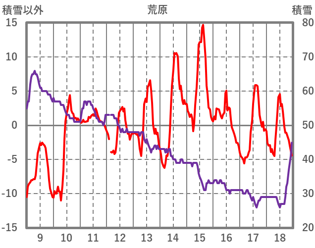 | 日 | 時 | 気温 | 降水 | 風向/風速 | 日照 | 積雪 | 降雪 |
