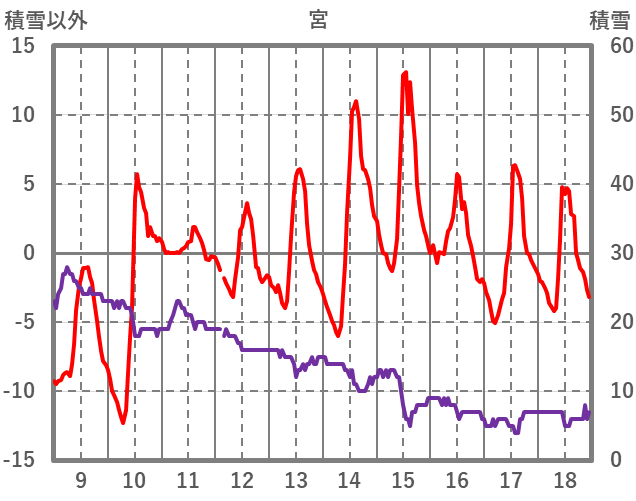 | 日 | 時 | 気温 | 降水 | 風向/風速 | 日照 | 積雪 | 降雪 |
