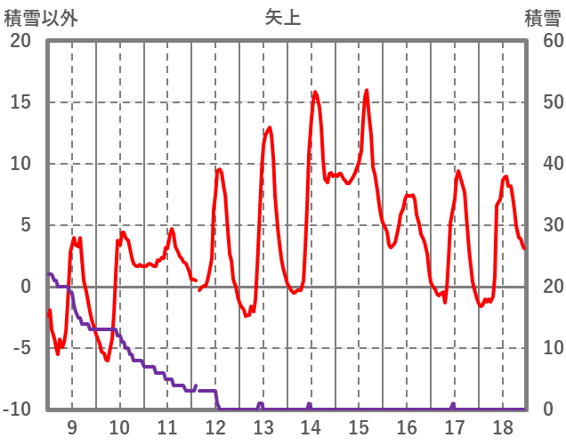 | 日 | 時 | 気温 | 降水 | 風向/風速 | 日照 | 積雪 | 降雪 |