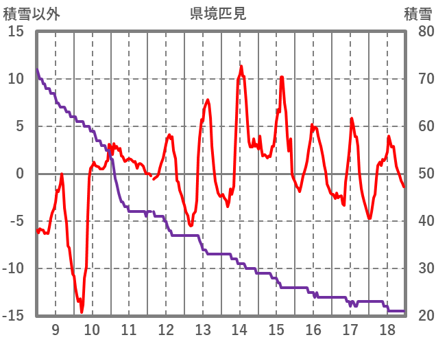 | 日 | 時 | 気温 | 降水 | 風向/風速 | 日照 | 積雪 | 降雪 |