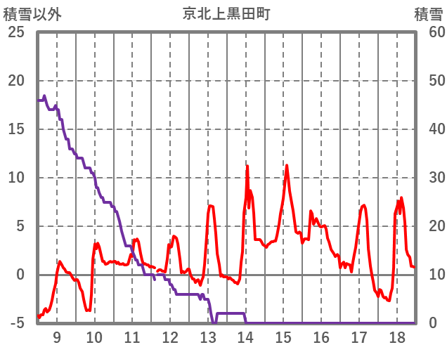 | 日 | 時 | 気温 | 降水 | 風向/風速 | 日照 | 積雪 | 降雪 |