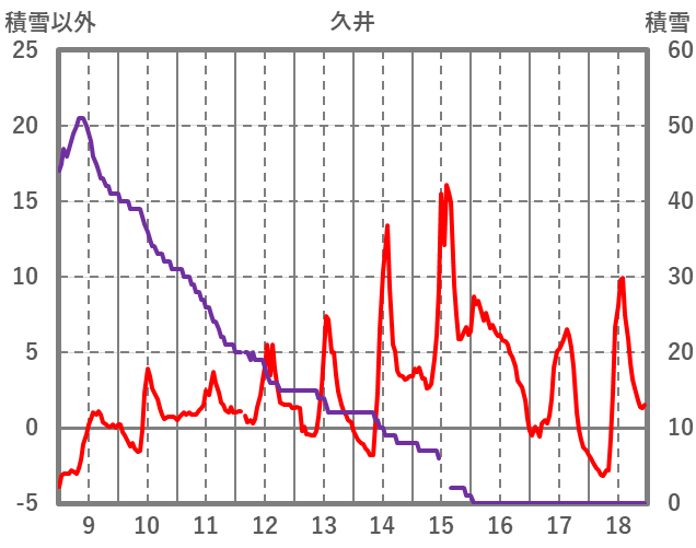 | 日 | 時 | 気温 | 降水 | 風向/風速 | 日照 | 積雪 | 降雪 |