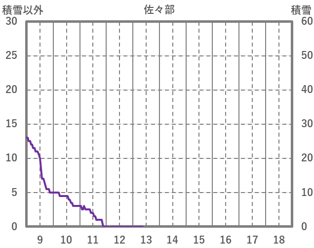 | 日 | 時 | 気温 | 降水 | 風向/風速 | 日照 | 積雪 | 降雪 |