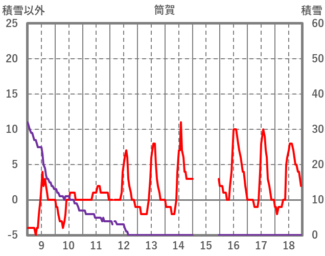 | 日 | 時 | 気温 | 降水 | 風向/風速 | 日照 | 積雪 | 降雪 |