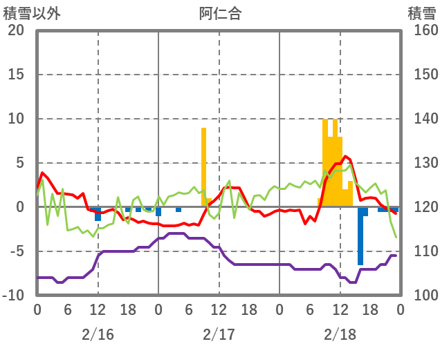| 日 | 時 | 気温 | 降水 | 風向/風速 | 日照 | 積雪 | 降雪 |