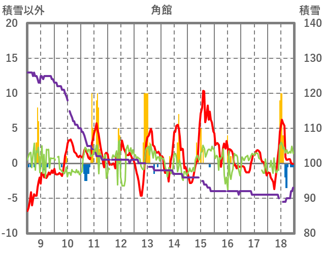 | 日 | 時 | 気温 | 降水 | 風向/風速 | 日照 | 積雪 | 降雪 |