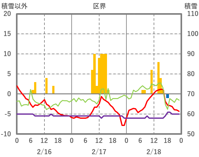 | 日 | 時 | 気温 | 降水 | 風向/風速 | 日照 | 積雪 | 降雪 |