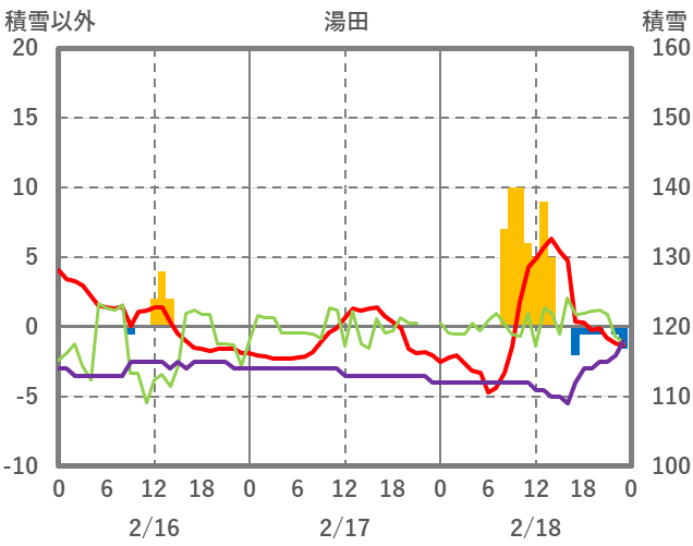 | 日 | 時 | 気温 | 降水 | 風向/風速 | 日照 | 積雪 | 降雪 |