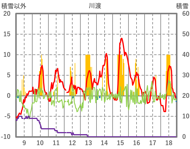 | 日 | 時 | 気温 | 降水 | 風向/風速 | 日照 | 積雪 | 降雪 |