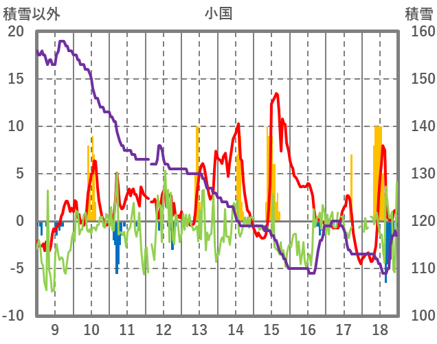 | 日 | 時 | 気温 | 降水 | 風向/風速 | 日照 | 積雪 | 降雪 |