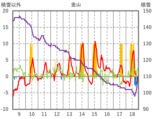 | 日 | 時 | 気温 | 降水 | 風向/風速 | 日照 | 積雪 | 降雪 |
