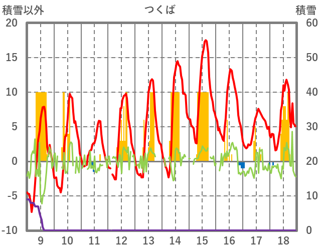 | 日 | 時 | 気温 | 降水 | 風向/風速 | 日照 | 積雪 | 降雪 |