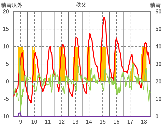 | 日 | 時 | 気温 | 降水 | 風向/風速 | 日照 | 積雪 | 降雪 |