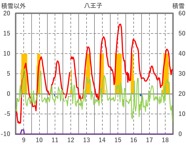 | 日 | 時 | 気温 | 降水 | 風向/風速 | 日照 | 積雪 | 降雪 |