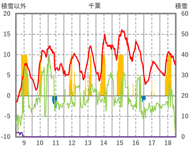 | 日 | 時 | 気温 | 降水 | 風向/風速 | 日照 | 積雪 | 降雪 |