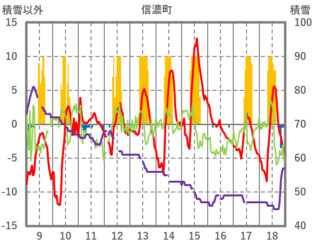 | 日 | 時 | 気温 | 降水 | 風向/風速 | 日照 | 積雪 | 降雪 |
