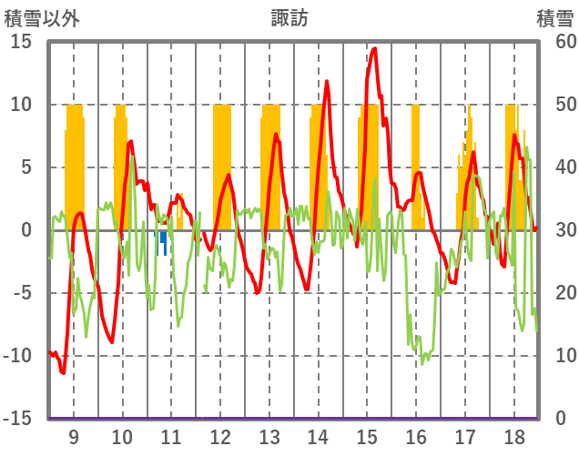 | 日 | 時 | 気温 | 降水 | 風向/風速 | 日照 | 積雪 | 降雪 |