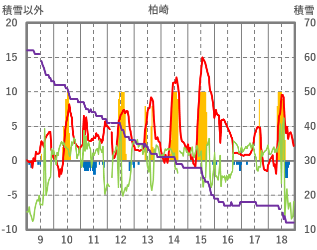 | 日 | 時 | 気温 | 降水 | 風向/風速 | 日照 | 積雪 | 降雪 |