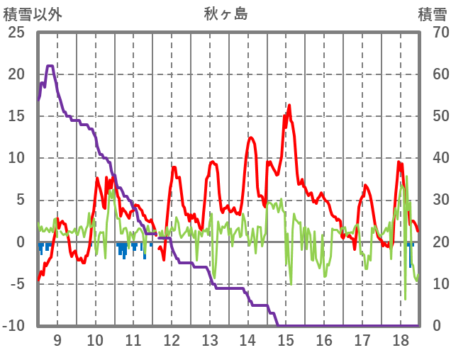 | 日 | 時 | 気温 | 降水 | 風向/風速 | 日照 | 積雪 | 降雪 |
