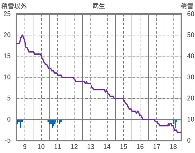 | 日 | 時 | 気温 | 降水 | 風向/風速 | 日照 | 積雪 | 降雪 |