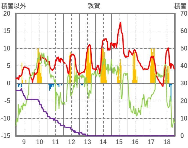 | 日 | 時 | 気温 | 降水 | 風向/風速 | 日照 | 積雪 | 降雪 |