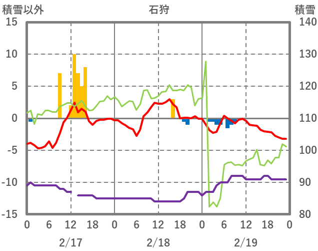| 日 | 時 | 気温 | 降水 | 風向/風速 | 日照 | 積雪 | 降雪 |