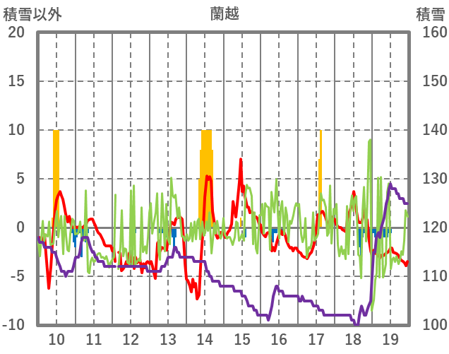 | 日 | 時 | 気温 | 降水 | 風向/風速 | 日照 | 積雪 | 降雪 |