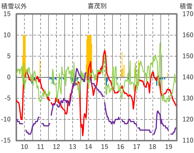 | 日 | 時 | 気温 | 降水 | 風向/風速 | 日照 | 積雪 | 降雪 |