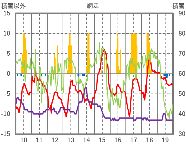 | 日 | 時 | 気温 | 降水 | 風向/風速 | 日照 | 積雪 | 降雪 |