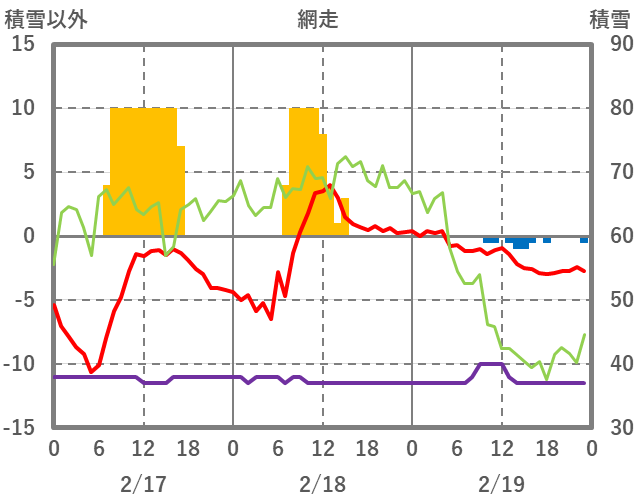 | 日 | 時 | 気温 | 降水 | 風向/風速 | 日照 | 積雪 | 降雪 |