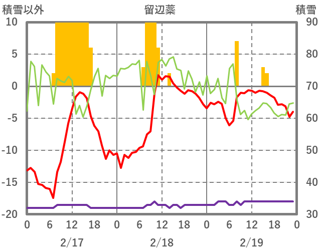 | 日 | 時 | 気温 | 降水 | 風向/風速 | 日照 | 積雪 | 降雪 |