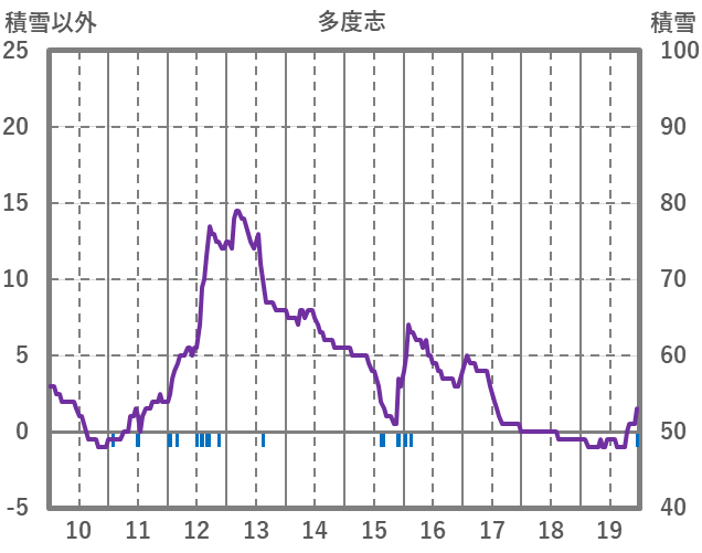 | 日 | 時 | 気温 | 降水 | 風向/風速 | 日照 | 積雪 | 降雪 |