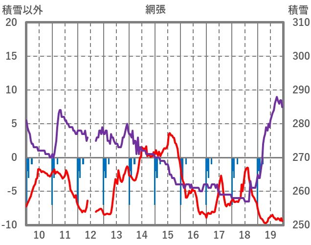 | 日 | 時 | 気温 | 降水 | 風向/風速 | 日照 | 積雪 | 降雪 |