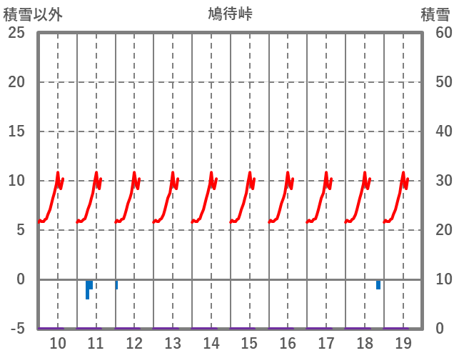 | 日 | 時 | 気温 | 降水 | 風向/風速 | 日照 | 積雪 | 降雪 |