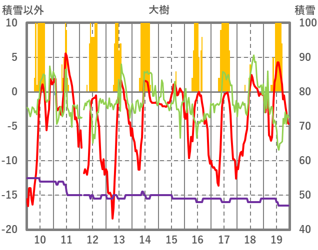 | 日 | 時 | 気温 | 降水 | 風向/風速 | 日照 | 積雪 | 降雪 |