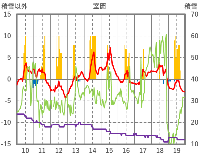 | 日 | 時 | 気温 | 降水 | 風向/風速 | 日照 | 積雪 | 降雪 |