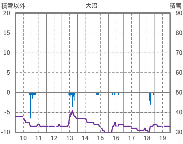 | 日 | 時 | 気温 | 降水 | 風向/風速 | 日照 | 積雪 | 降雪 |