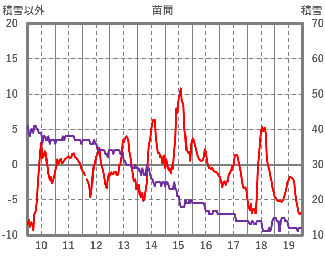 | 日 | 時 | 気温 | 降水 | 風向/風速 | 日照 | 積雪 | 降雪 |