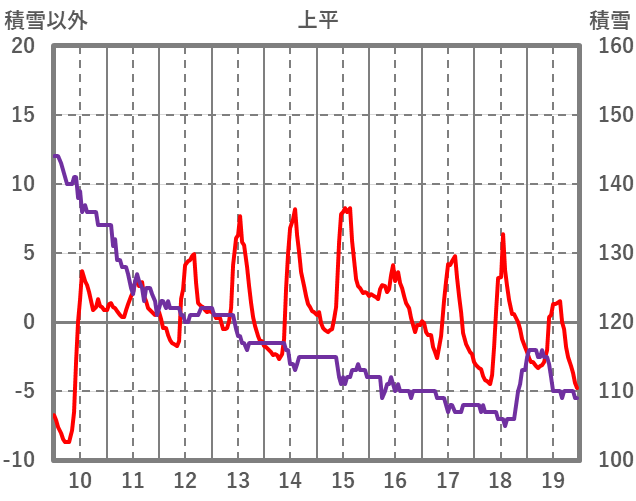 | 日 | 時 | 気温 | 降水 | 風向/風速 | 日照 | 積雪 | 降雪 |
