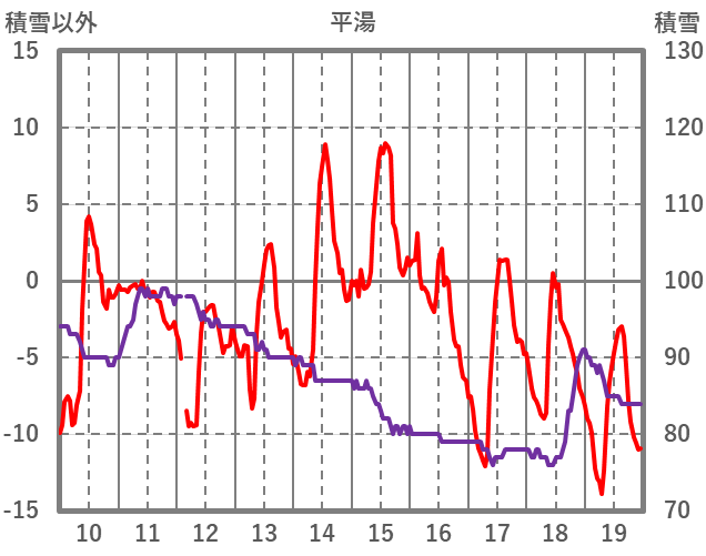 | 日 | 時 | 気温 | 降水 | 風向/風速 | 日照 | 積雪 | 降雪 |