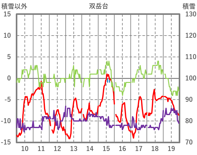 | 日 | 時 | 気温 | 降水 | 風向/風速 | 日照 | 積雪 | 降雪 |