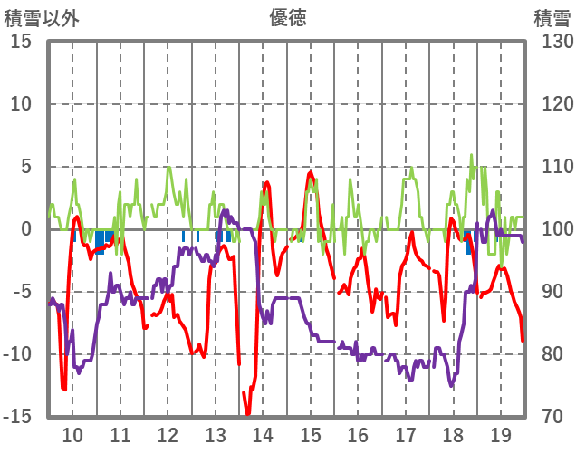 | 日 | 時 | 気温 | 降水 | 風向/風速 | 日照 | 積雪 | 降雪 |