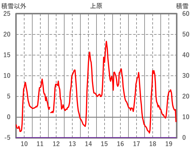 | 日 | 時 | 気温 | 降水 | 風向/風速 | 日照 | 積雪 | 降雪 |