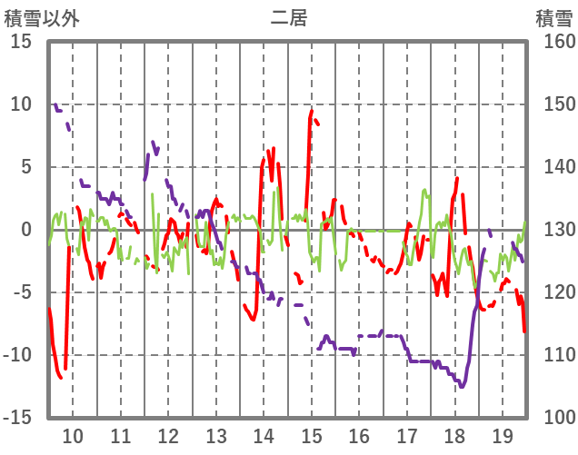 | 日 | 時 | 気温 | 降水 | 風向/風速 | 日照 | 積雪 | 降雪 |